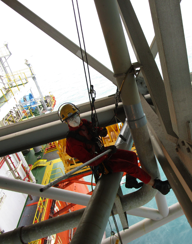 服务说明:结合高空绳索技术对平台进行外观检验,结构设施防腐维修,清洗等。