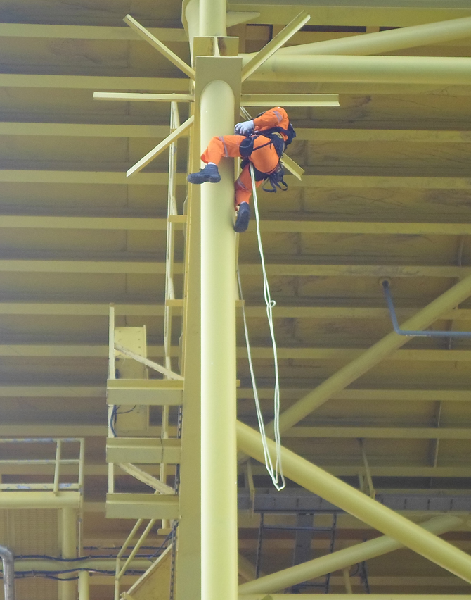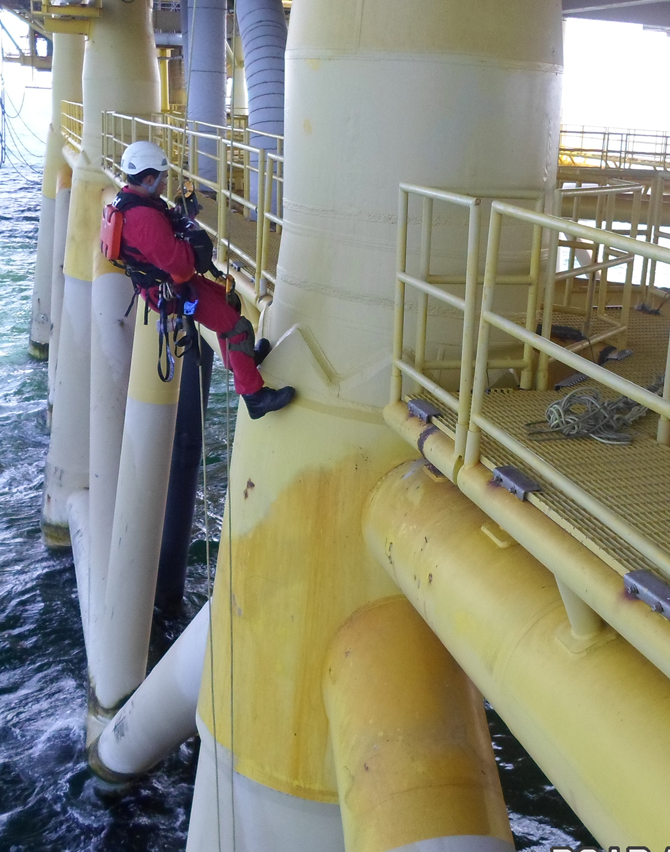 服务过程:结合高空绳索技术为平台提供了上部结构检验服务,检验项目内容涵盖平台井架、桩腿各种支撑结构,检验技术包含外观检验、涡流检验、磁粉检验、超声波检验。